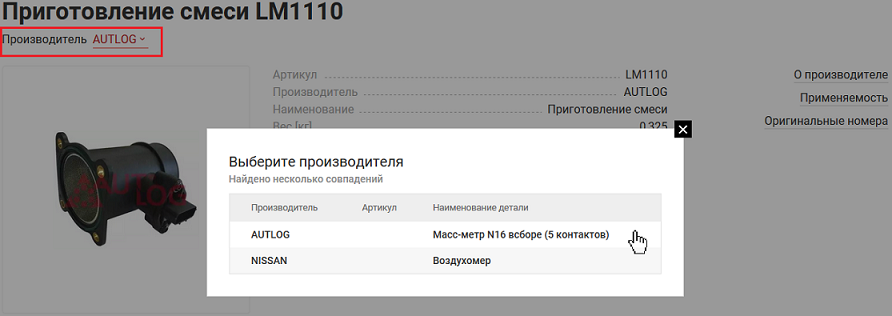 Если по вашему запросу найдутся детали нескольких производителей – выберите интересующего (Рис. 2). Система произведёт поиск и отобразит все доступные варианты поставки выбранного артикула, его аналогов и замен. (Рис. 3).