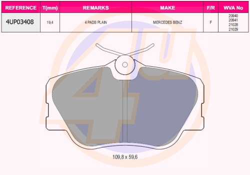 4UP03408 4U Колодки тормозные дисковые