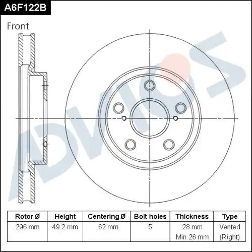 A6F122B ADVICS Диск тормозной