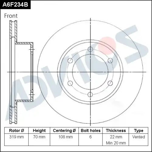 A6F234B ADVICS Диск тормозной