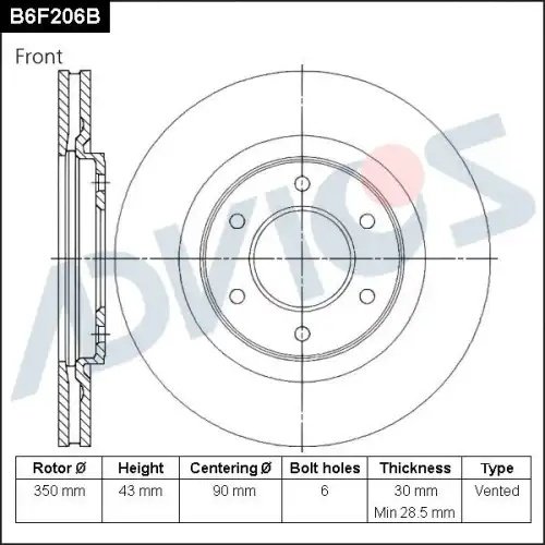 B6F206B ADVICS Диск тормозной