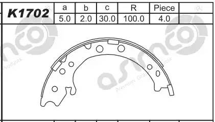 K1702 ASIMCO Колодки тормозные барабанные