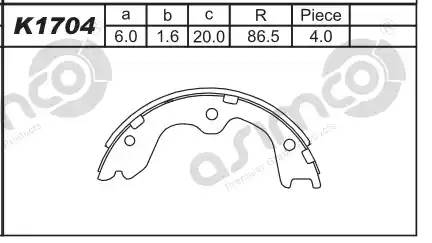 K1704 ASIMCO Колодки тормозные барабанные