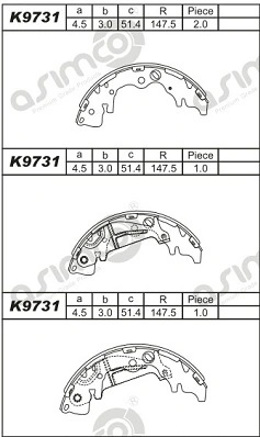 K9731 ASIMCO Колодки тормозные барабанные
