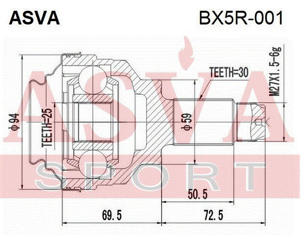 BX5R-001 ASVA Вал привода колеса в сборе с ШРУСами