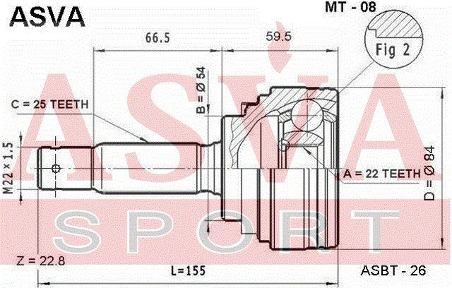 MT-08 ASVA Вал привода колеса в сборе с ШРУСами