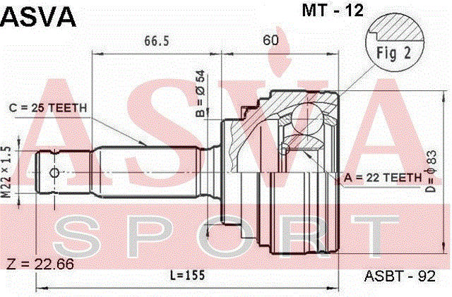 MT-12 ASVA Вал привода колеса в сборе с ШРУСами