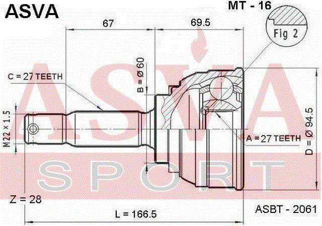 MT-16 ASVA Вал привода колеса в сборе с ШРУСами