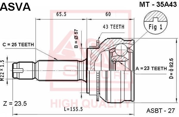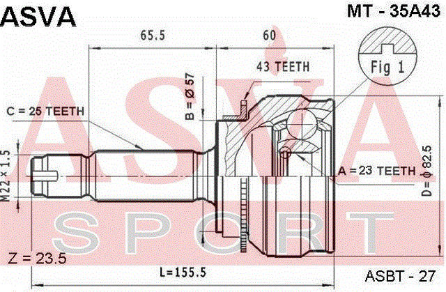 MT-35A43 ASVA Вал привода колеса в сборе с ШРУСами