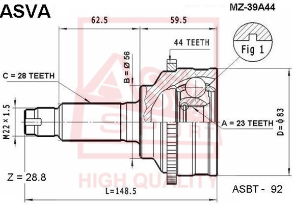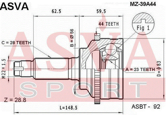 MZ-39A44 ASVA Вал привода колеса в сборе с ШРУСами