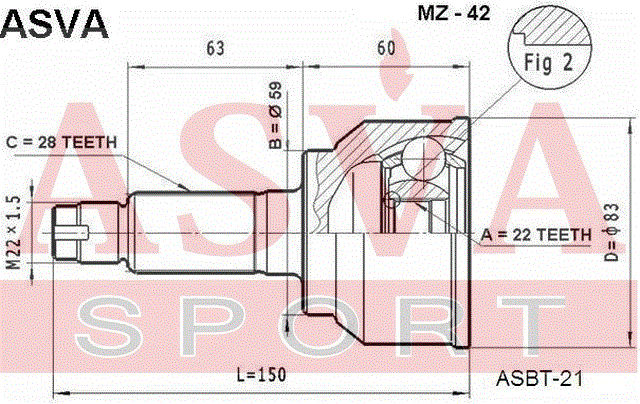 MZ-42 ASVA Вал привода колеса в сборе с ШРУСами