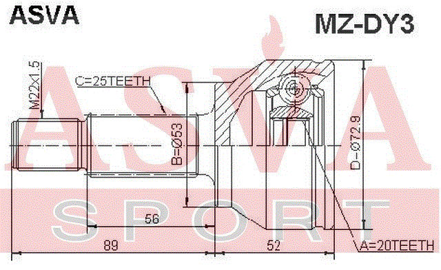 MZ-DY3 ASVA Вал привода колеса с ШРУСом
