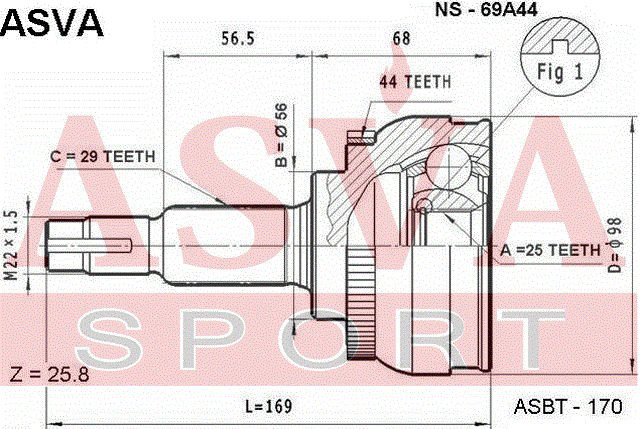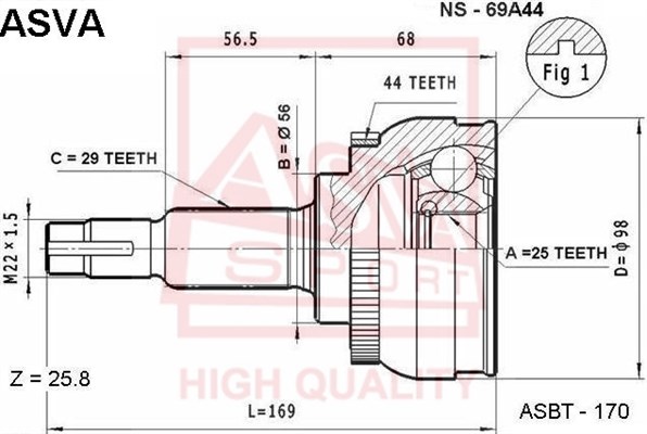 NS-69A44 ASVA Вал привода колеса в сборе с ШРУСами