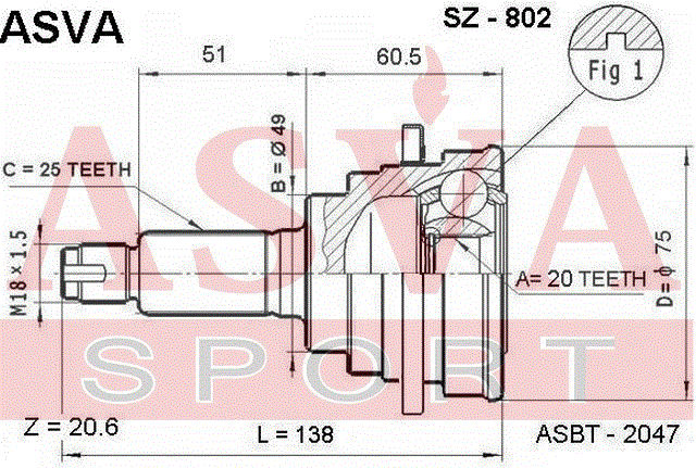 SZ-802 ASVA Вал привода колеса в сборе с ШРУСами