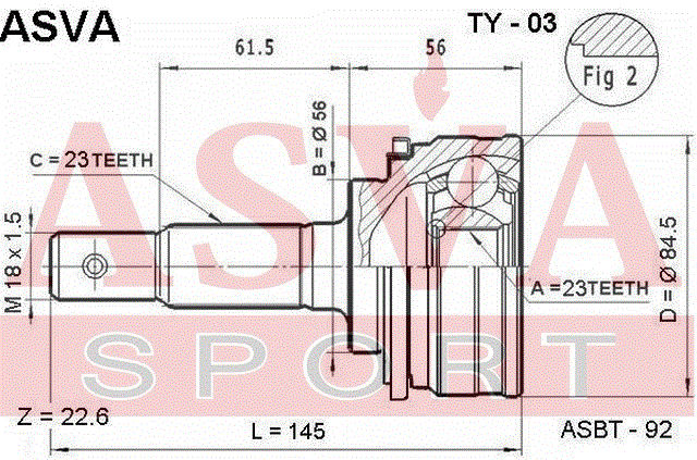TY-03 ASVA Вал привода колеса в сборе с ШРУСами