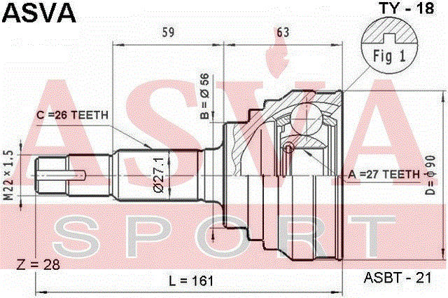 TY-18 ASVA Вал привода колеса в сборе с ШРУСами
