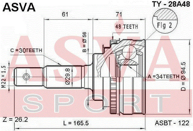 TY-28A48 ASVA Вал привода колеса в сборе с ШРУСами