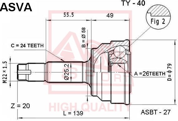 TY-40 ASVA Вал привода колеса с ШРУСом