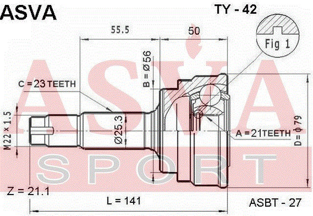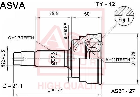 TY-42 ASVA Вал привода колеса с ШРУСом