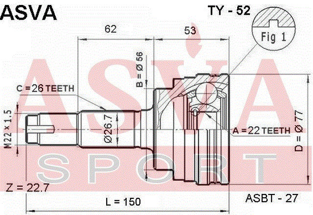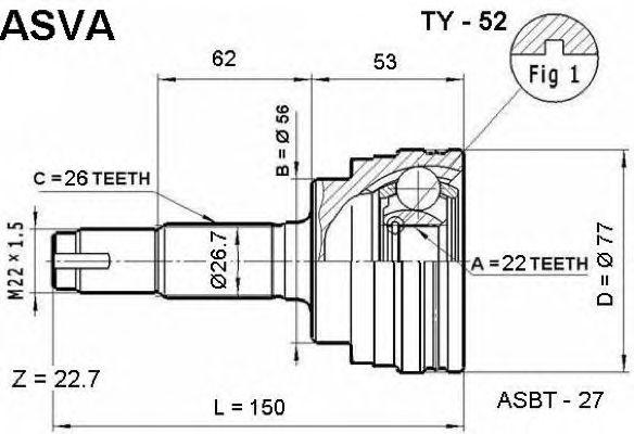 TY-52 ASVA Вал привода колеса в сборе с ШРУСами