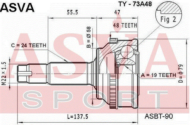 TY-73A48 ASVA Вал привода колеса в сборе с ШРУСами