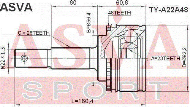 TY-A22A48 ASVA Вал привода колеса с ШРУСом