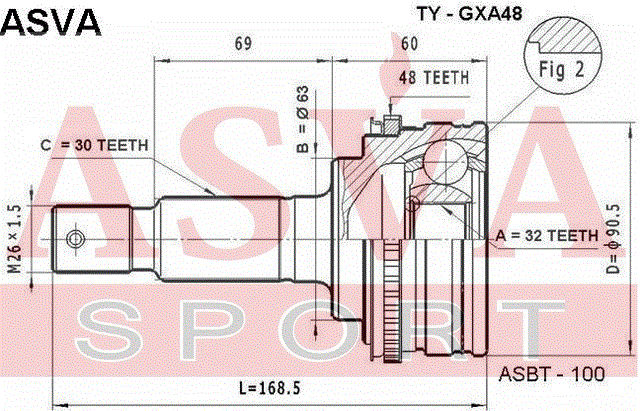 TY-GXA48 ASVA Вал привода колеса в сборе с ШРУСами
