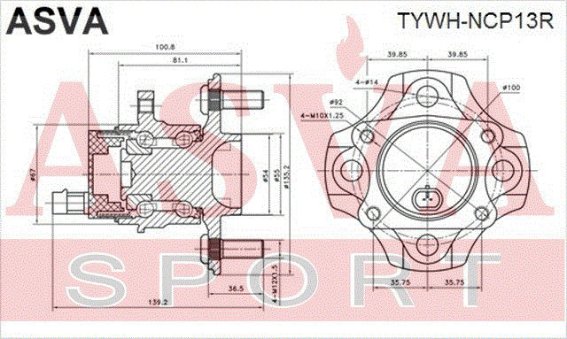 TYWH-NCP13R ASVA Подшипник ступицы колеса со ступицей (комплект)