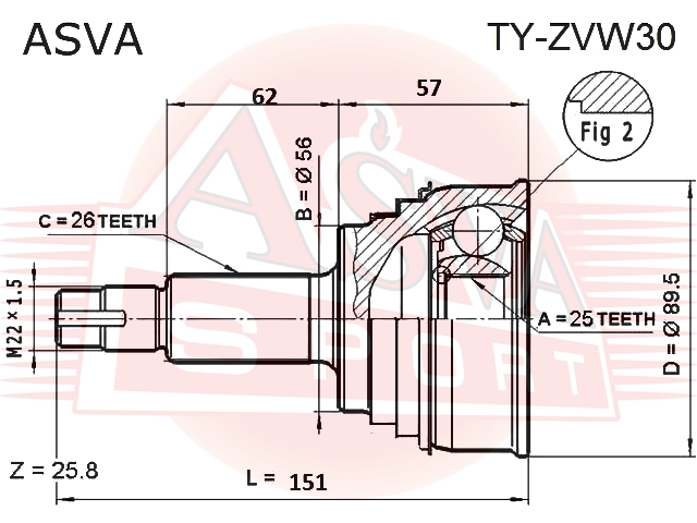 TY-ZVW30 ASVA Вал привода колеса в сборе с ШРУСами