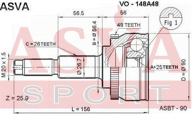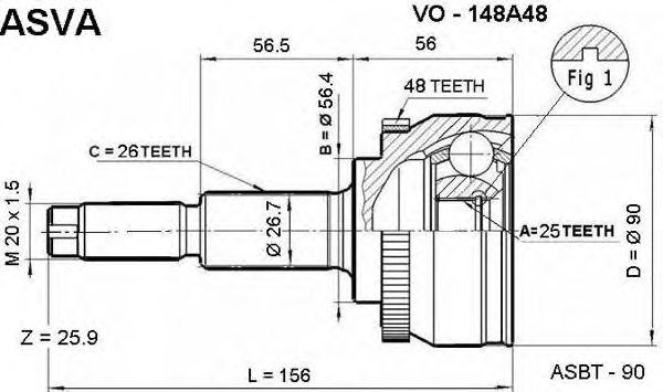 VO-148A48 ASVA Вал привода колеса в сборе с ШРУСами