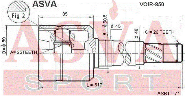 VOR-BZ ASVA Вал привода колеса в сборе с ШРУСами
