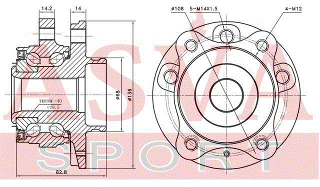 VOWH-XC9F ASVA Подшипник ступицы колеса со ступицей (комплект)