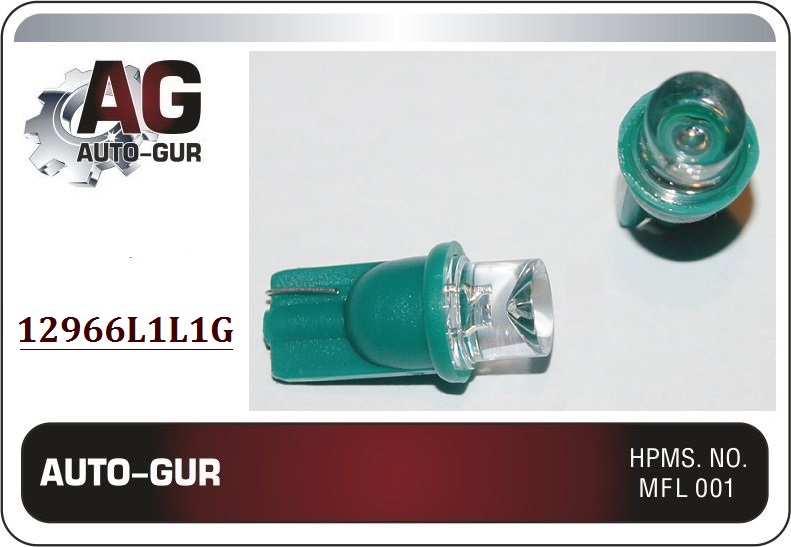 12966L1L1G AUTO GUR Лампа светодиодная W5W / T10 / 12V 1LED конус зел.