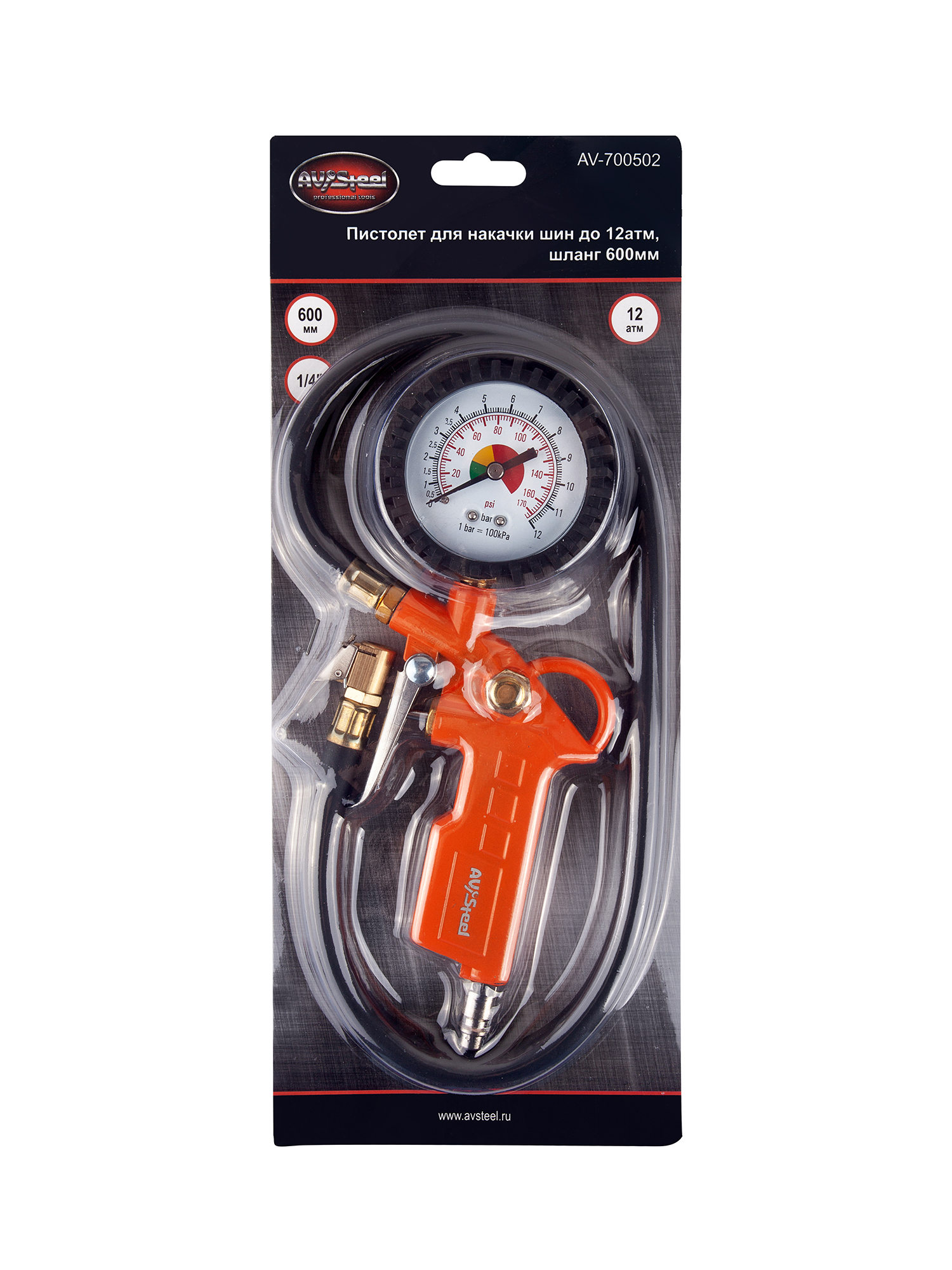 AV700502 AV STEEL Пистолет для подкачки шин с манометром