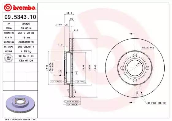BS8014 BRECO Диск тормозной