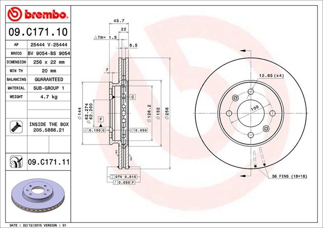 09C17110 BREMBO Диск тормозной HYUNDAI SOLARIS 10-/KIA RIO III 11- передний D=256мм.