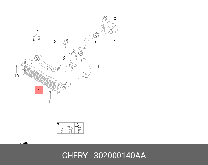 302000140AA CHERY Интеркулер воздушный турбокомпрессора