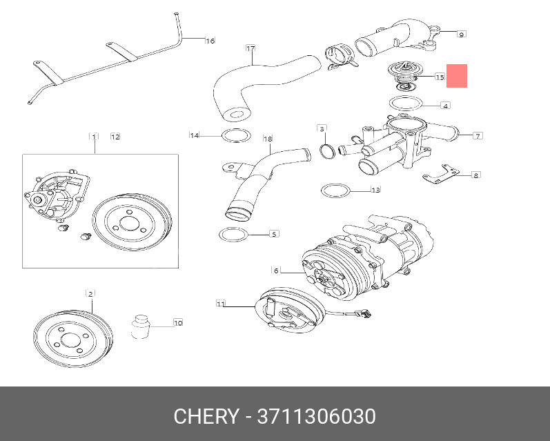3711306030 CHERY "Термостат (Т11 1,6) 371-1306030"