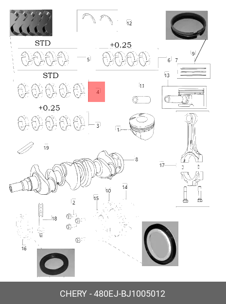 480EJ-BJ1005012 CHERY Вкладыши коренные (к-т) AMULET (0.00) 2-ой ВИД 480EJ-BJ1005012