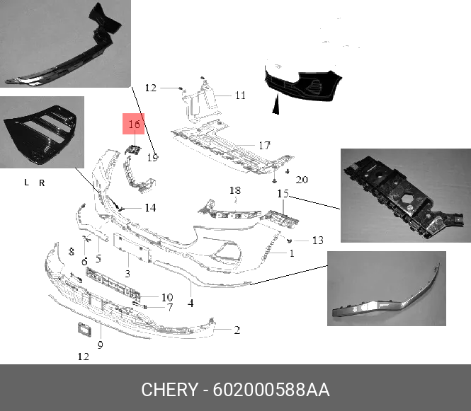 602000588AA CHERY Кронштейн крепления бампера