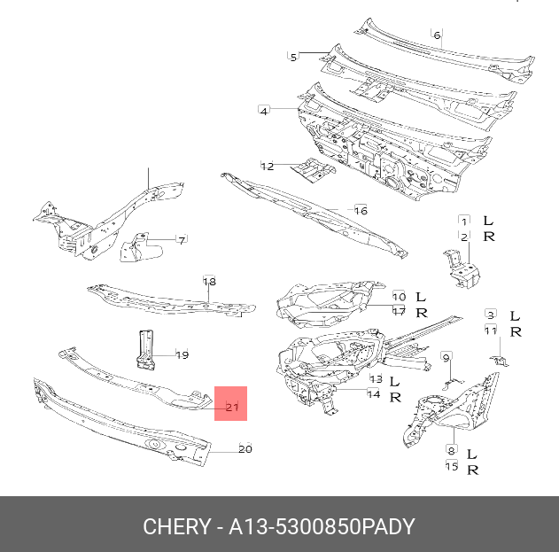 A135300850PADY CHERY УСИЛИТЕЛЬ ПЕРЕДНЕГО БАМПЕРА ВЕРХНИЙ