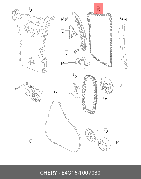 E4G161007080 CHERY ЦЕПЬ ГРМ
