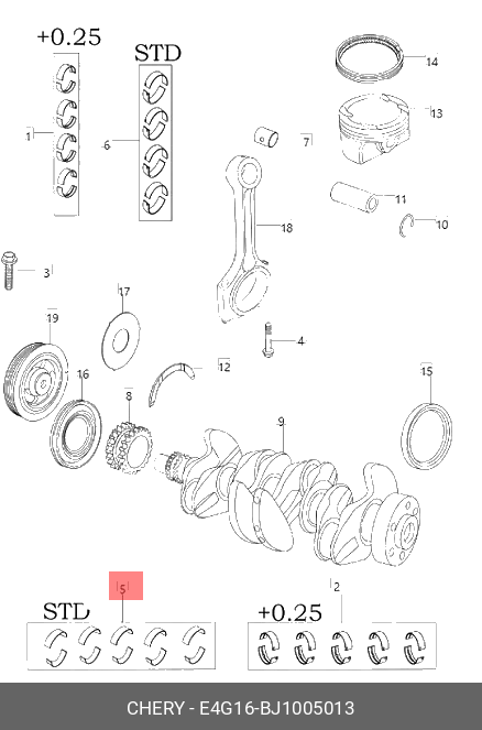E4G16-BJ1005013 CHERY ВКЛАДЫШ КОРЕННОЙ 000 КТ