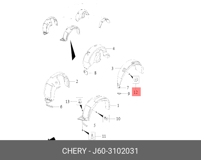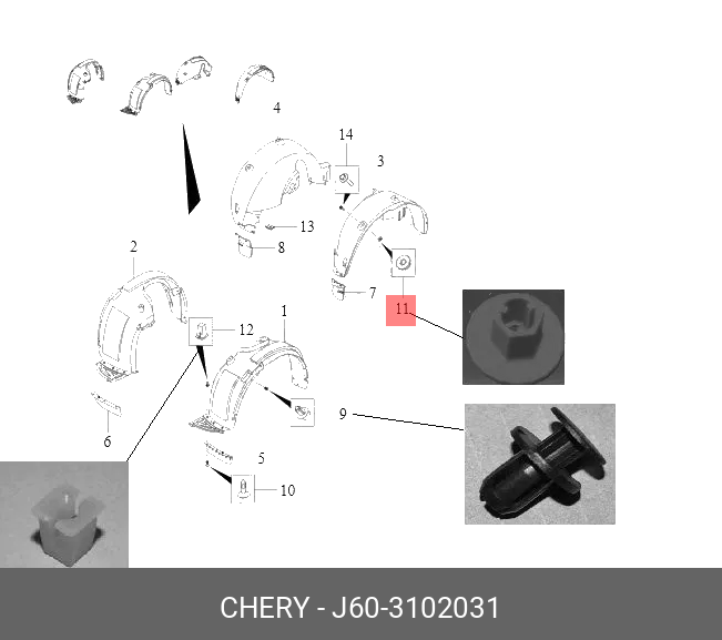 J60-3102031 CHERY Клипса крепежная