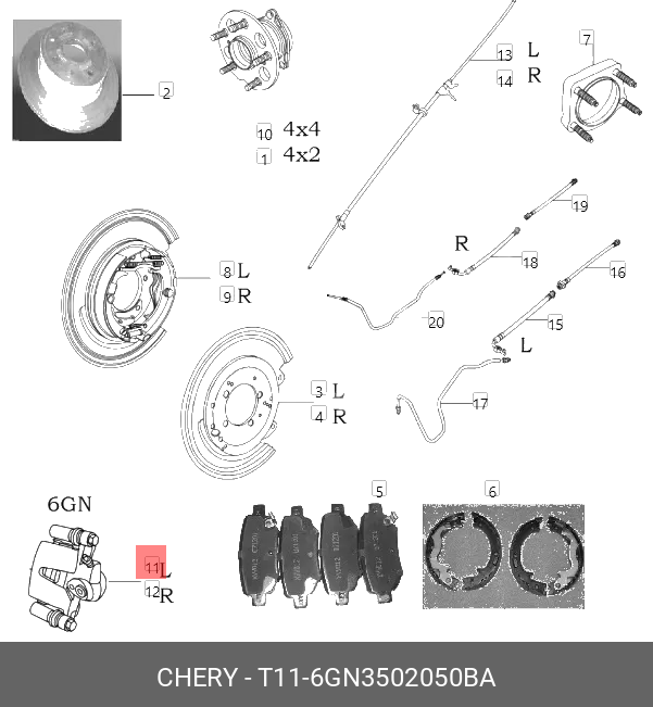 T11-6GN3502050BA CHERY Суппорт тормозной