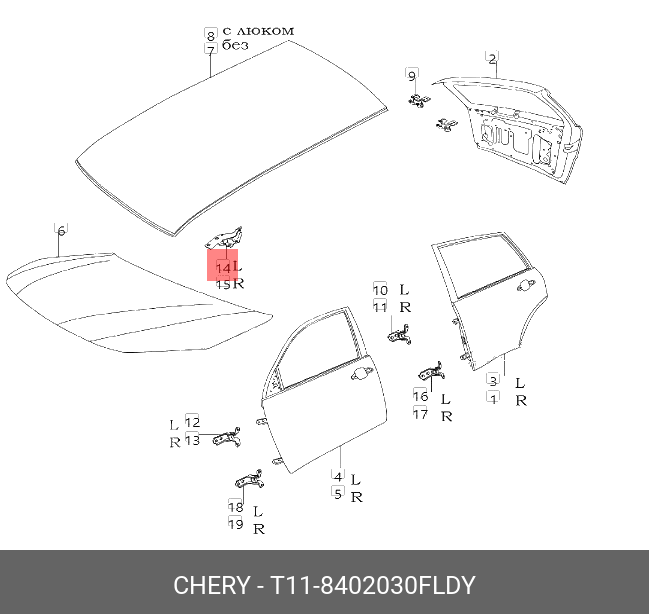 T118402030FLDY CHERY Петля - шарнир открывания капота