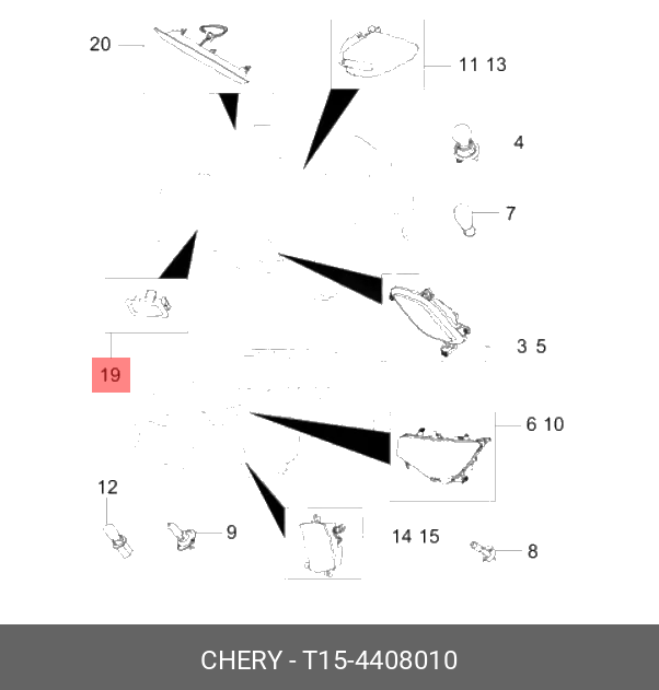 T154408010 CHERY Фонарь освещения номерного знака