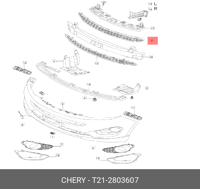 T212803607 CHERY Решетка бампера