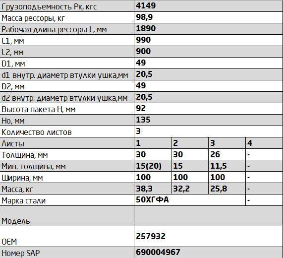 | Наименование | Рессора листовая |