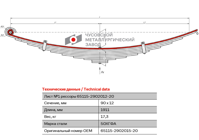 65115-2902015-20 OMK AUTO Лист рессорный